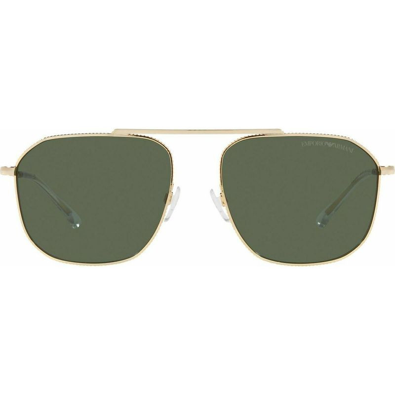 The Emporio Armani EA2107 sunglasses in pale gold, are a fashionable hexagonal aviator silhouette that offers a luxurious look. These sunglasses are designed to suit men and are the perfect style to finish your look for special occasions or even a cool casual look. These pale gold metal frames have a ridged detail that holds a green lens that offers high UV protection. The adjustable nose pad and lightweight material make these sunglasses a comfortable and durable fit.
