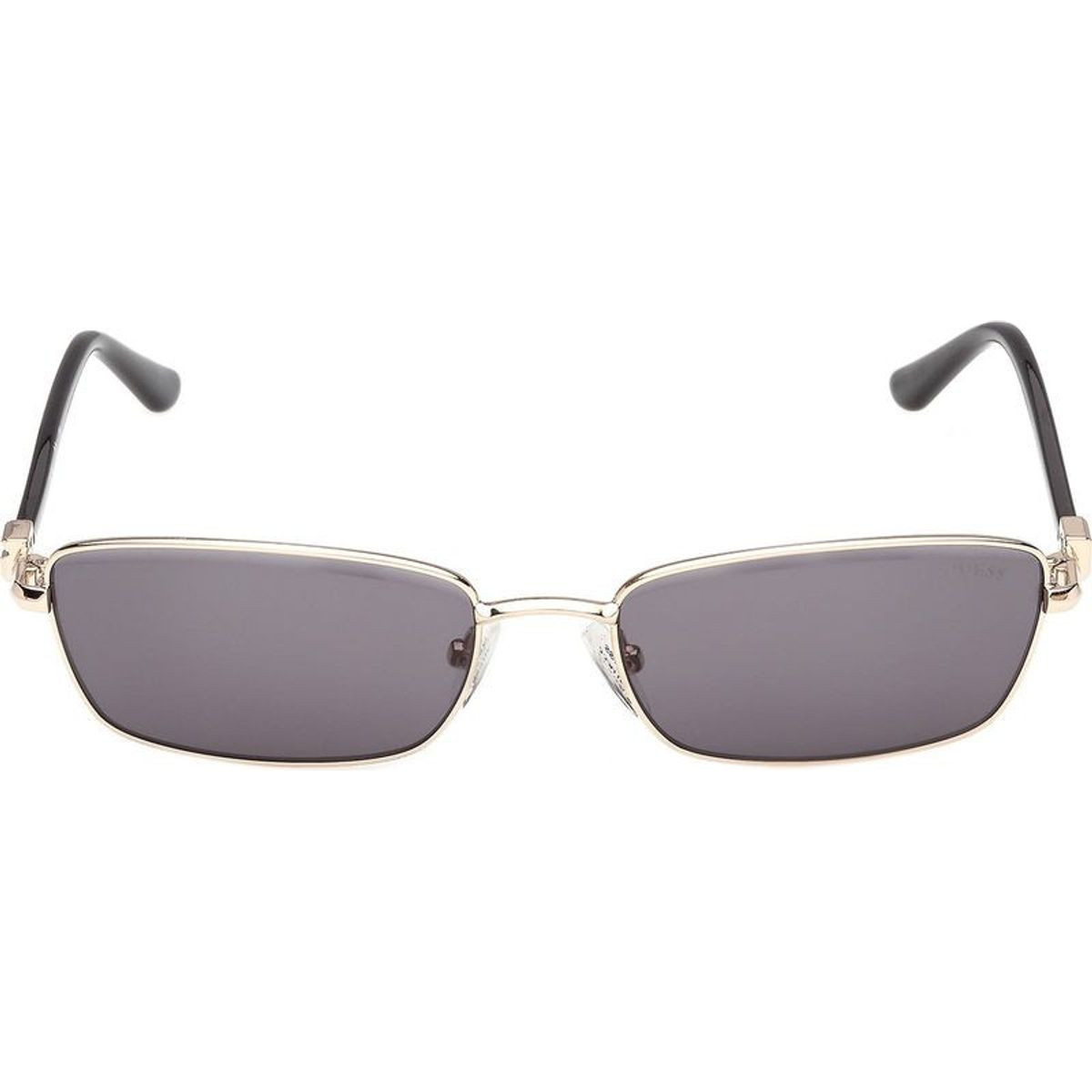 Guess presents the GU00290 sunglasses as a bold fusion of vintage glamour and modern attitude. Inspired by retro styling, this sleek design boasts an ultra-narrow rectangular silhouette, complete with a gold metal construction and injected black temples for a striking contrast. A stunning new Guess logo adorns both temples for a signature finish. Paired with smoke lenses, the GU00290 sunglasses will be your next go-to pair for everyday elegance and UV protection.