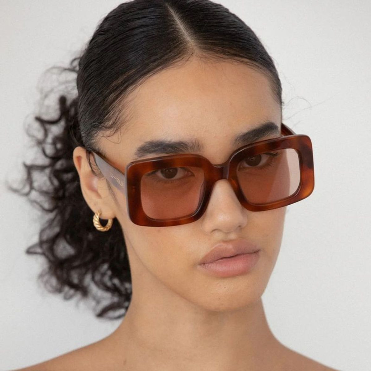 The Lu Goldie Mia sunglasses are a bold square frame that offers a 70's inspired look with its thick frame and temples. This style features the Lu Goldie signature on the side of the temples in beautiful gold foil that can't be missed. If you're looking for an escape route, these sunglasses will do the job for you with their oversized fit.