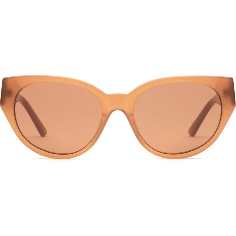 The Lu Goldie Mieli sunglasses are a fashionable silhouette that ensures a flattering fit on many face shapes. This soft cat-eye design boasts a warm cocoa coloured frame that is balanced with a soothing brown lens for the ultimate summer-to accessory. The temples are embellished with gold brand lettering on either side, for a fresh and smooth finish.
