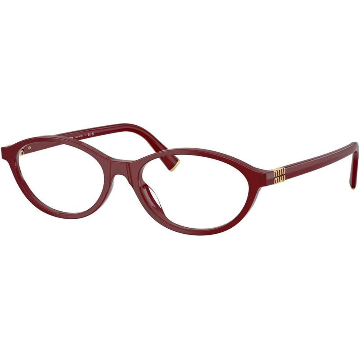 The Miu Miu MU09XVF optical frames are sophisticated, versatile and undeniably modern. Combining refined minimalism with a fashion-forward elegance, this petite oval silhouette delivers a confident aesthetic to everyday prescription eyewear. The rich burgundy colourway adds a vibrant colour pop to your look, while Miu Miu's signature vertical logo at the temples offers a subtle distinction of brand identity. Designed as an alternative fit, the MU09XVF ensures a comfortable fit for faces with high cheekbones and a narrow nose bridge.