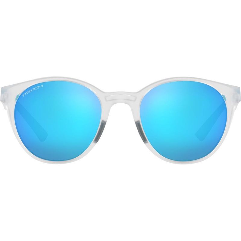 The Oakley Spindrift sunglasses in matte clear feature a timeless, round design that also doubles as performance eyewear. With Oakley's Prizm sapphire lenses and a barely-there lightweight frame, wear these stylish sunglasses outside comfortably doing the activities you love the most.