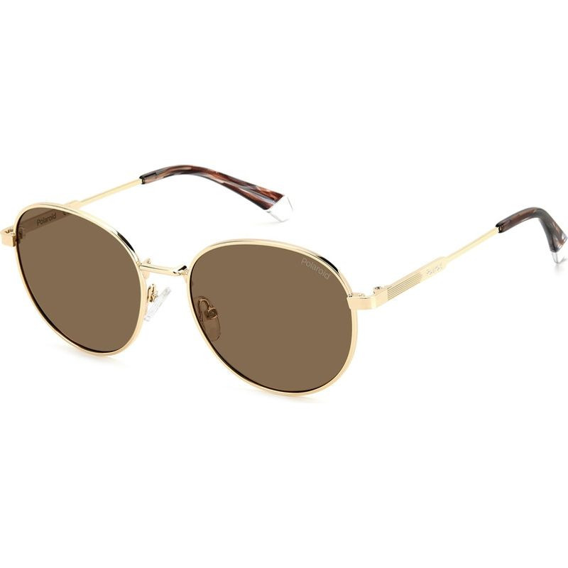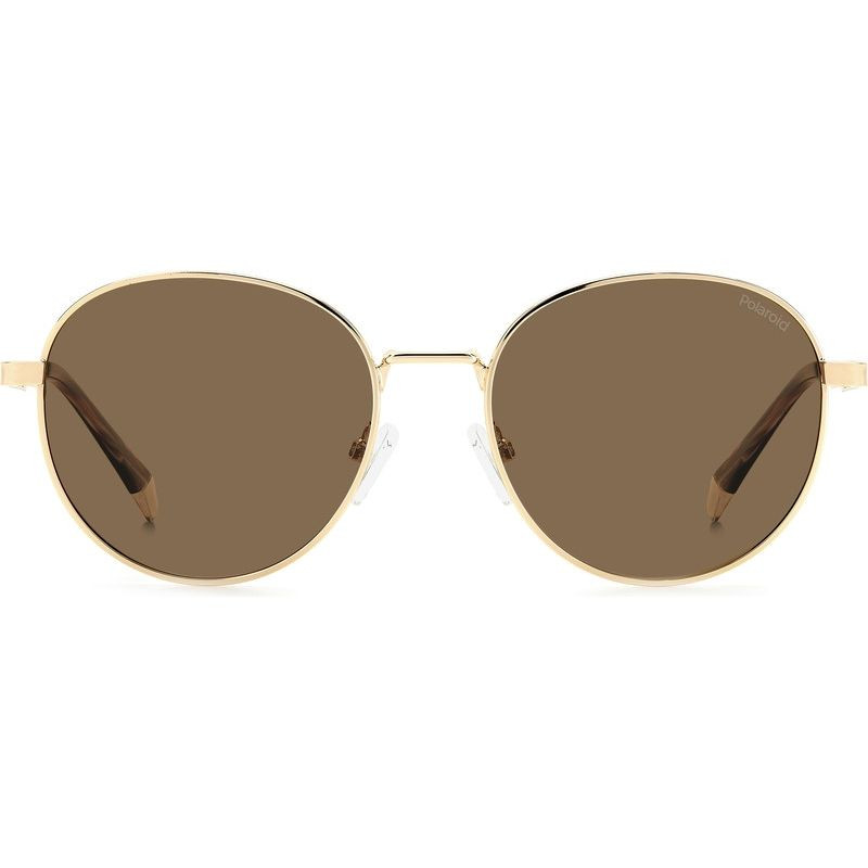The Polaroid PLD 4135/S/X sunglasses are an ultralight metal unisex design that are entirely unique thanks to distinct features, such as the laser-etched motif on the temples near the hinges and the iconic clear details on the end tips, a classic Polaroid signature. The gold-brown round rims rest on comfortable adjustable nose pads, the perfect element to adapt these sunglasses to any face. Fitted with bronze polarised lenses, these sunglasses are ideal for protection against sun glare.