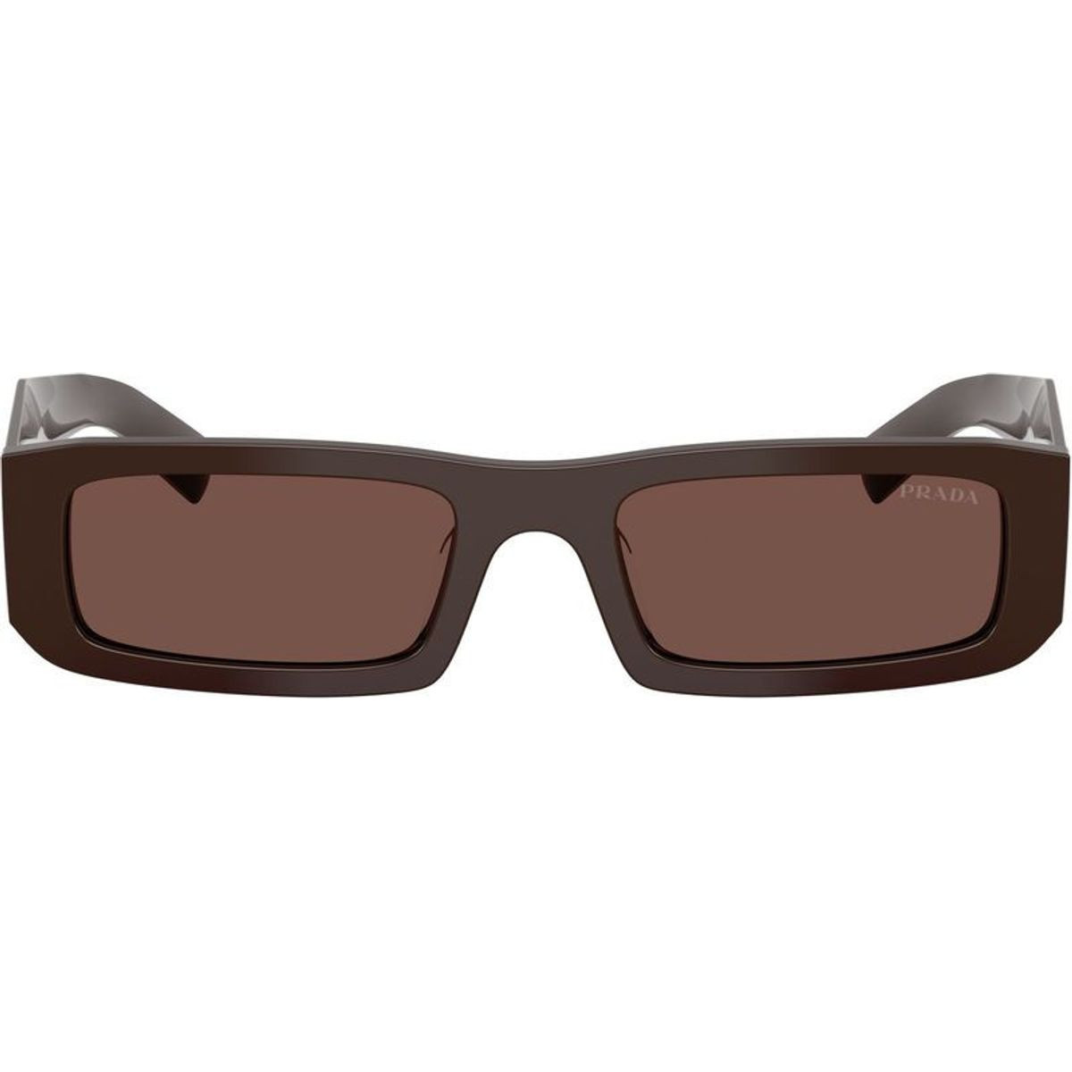 The men's Prada PRD09SD sunglasses are a bold expression of confidence. Defined by a sleek rectangular silhouette, this narrow design fuses striking geometric and luxury in one fashion-forward piece. Crafted from high-density acetate, the brown frame delivers a substantial and premium feel for the modern man. The tapered temples are adorned with Prada's signature triangle logo for a distinctive finish. Paired with matching brown lenses, the PRD09SD sunglasses ensure essential UV protection and a soothing visual experience.