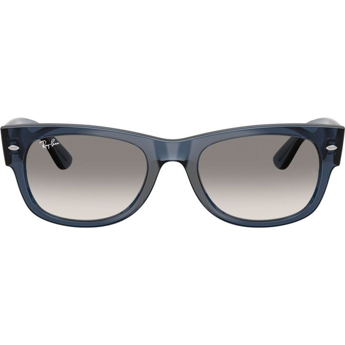 The Ray-Ban Mega Wayfarer II RB0832S sunglasses redefine iconic style with a contemporary twist. This bold reinterpretation of a classic silhouette features oversized proportions and striking temples, making a confident statement with every wear. Crafted from transparent blue acetate and paired with light grey gradient glass lenses, the RB0832S delivers exceptional clarity while elevating your look with modern sophistication.