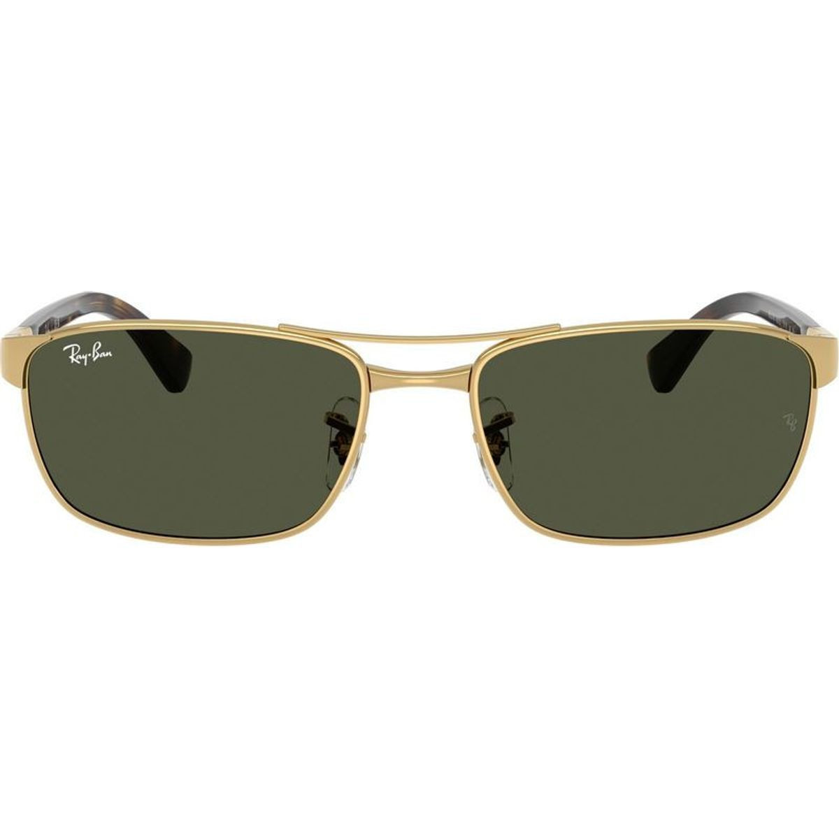 The Ray-Ban RB3778 sunglasses are a masterclass in timeless sophistication. Featuring a narrow rectangular silhouette, this low-profile design is crafted from premium Arista gold metal and detailed with a sleek double bridge and adjustable nose pads for a perfectly tailored fit. Fitted with Ray-Ban's signature green glass lenses, the RB3778 sunglasses deliver crystal-clear optics while blending classic charm with modern refinement.