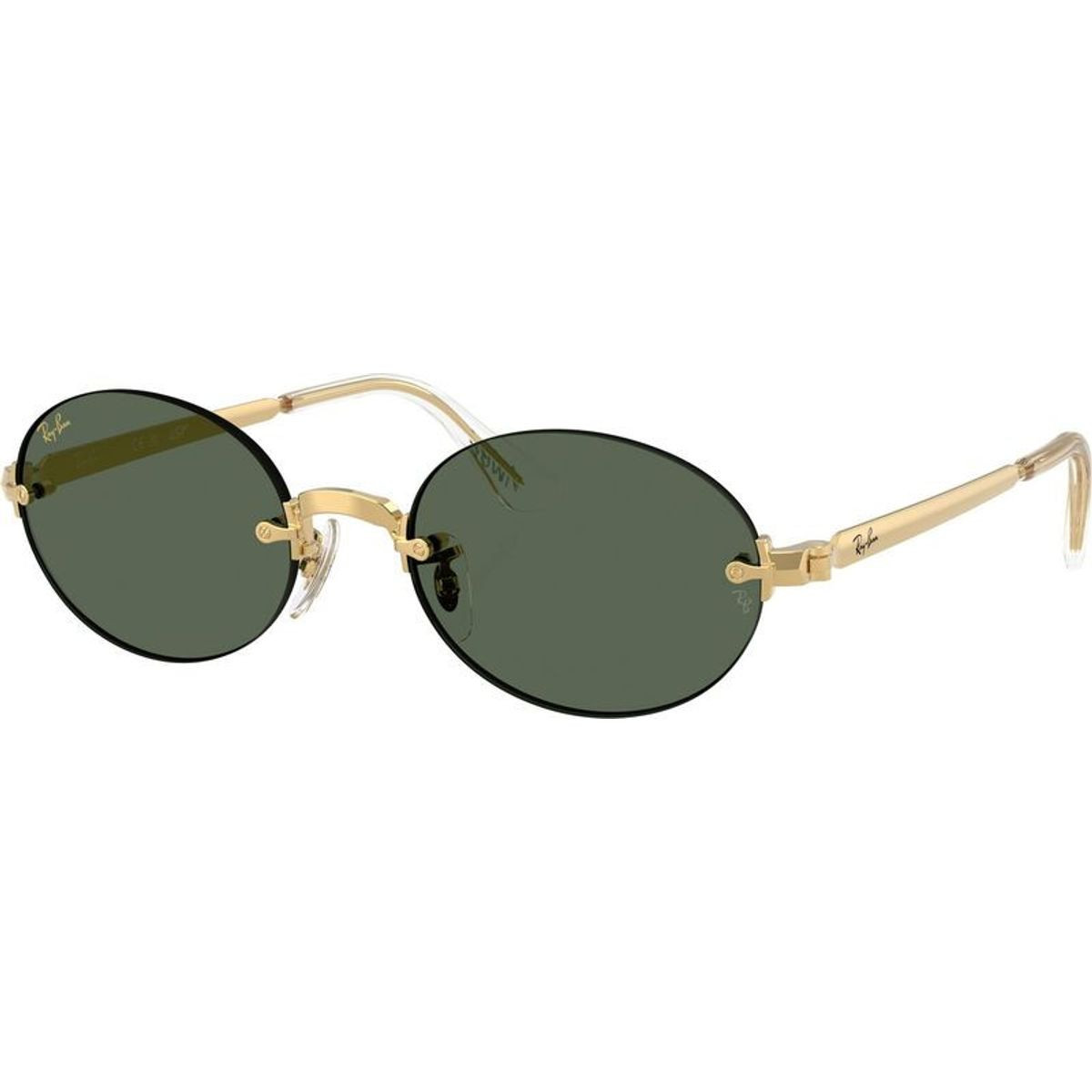 Meet the RB3929 sunglasses by Ray-Ban - the perfect blend of timeless style and modern versatility. Boasting a chic oval silhouette, this exceptional style showcases a striking rimless construction complete with sleek gold temples and a nose bridge that exudes classic elegance. Paired with Ray-Ban's signature green lenses, the RB3929 sunglasses offer subtle sophistication to any look while ensuring essential UV protection for both men and women.