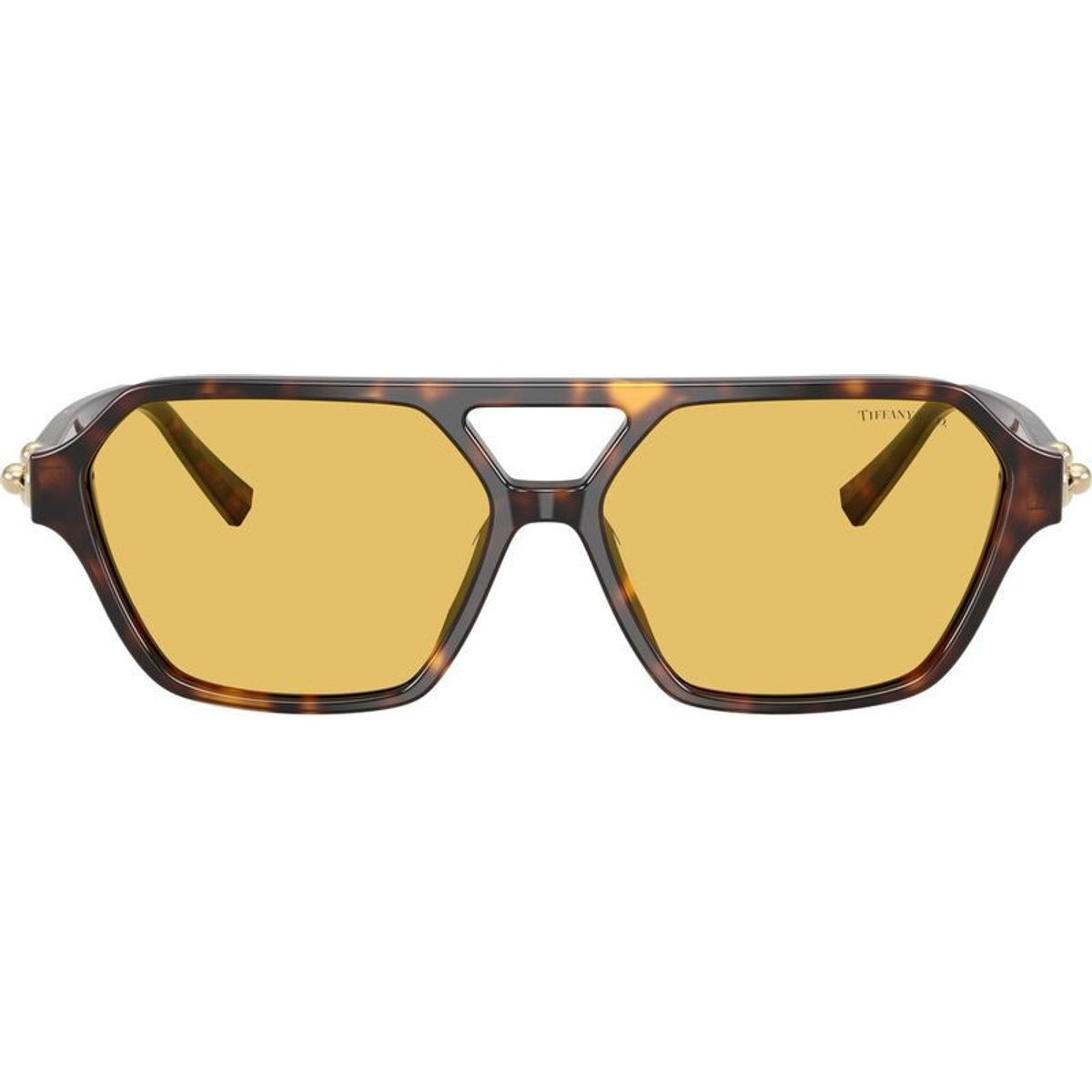 Tiffany & Co. introduce the TF4264U sunglasses as a bold, modern take on the aviator silhouette, now refreshingly unique for the House. This trendy pilot design is meticulously crafted from premium havana acetate, complete with sharp contours and a double-bridge feature for a contemporary flair. The signature HardWear gauge links appear on the temples, serving as both functional hinges and stylish accents. Paired with vibrant yellow lenses, the TF4264U delivers a striking, statement-making look while maintaining the brand’s signature luxury and refinement.
