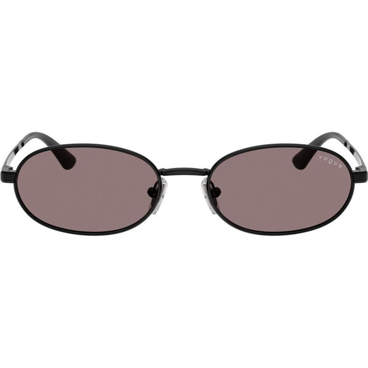 Add a subtle, fashion-forward edge to your everyday ensemble in the VO4353S sunglasses by Vogue Eyewear. Designed with an elegant oval silhouette, this slim black metal frame feels light and sculptural, offering a sophisticated aesthetic for the modern woman. Slender temples are adorned with Vogue's iconic logo for instant brand prestige. Paired with dark purple lenses, this style is elevated with a hint of unexpected glamour.