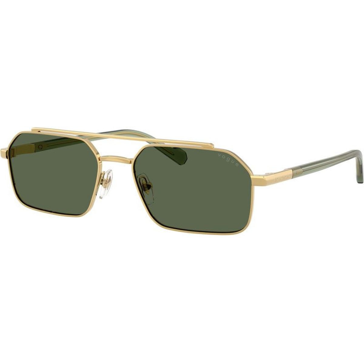 The men's VO4356S sunglasses by Vogue Eyewear are the perfect companion for city living and everyday adventures. Defined by a geometric silhouette, this slender gold metal construction is enhanced with a double-bridge feature, adjustable nose pads and acetate temple tips for all-day comfort and sophistication. Paired with classic green lenses, the VO4356S sunglasses deliver a vintage-inspired contrast with high UV protection.