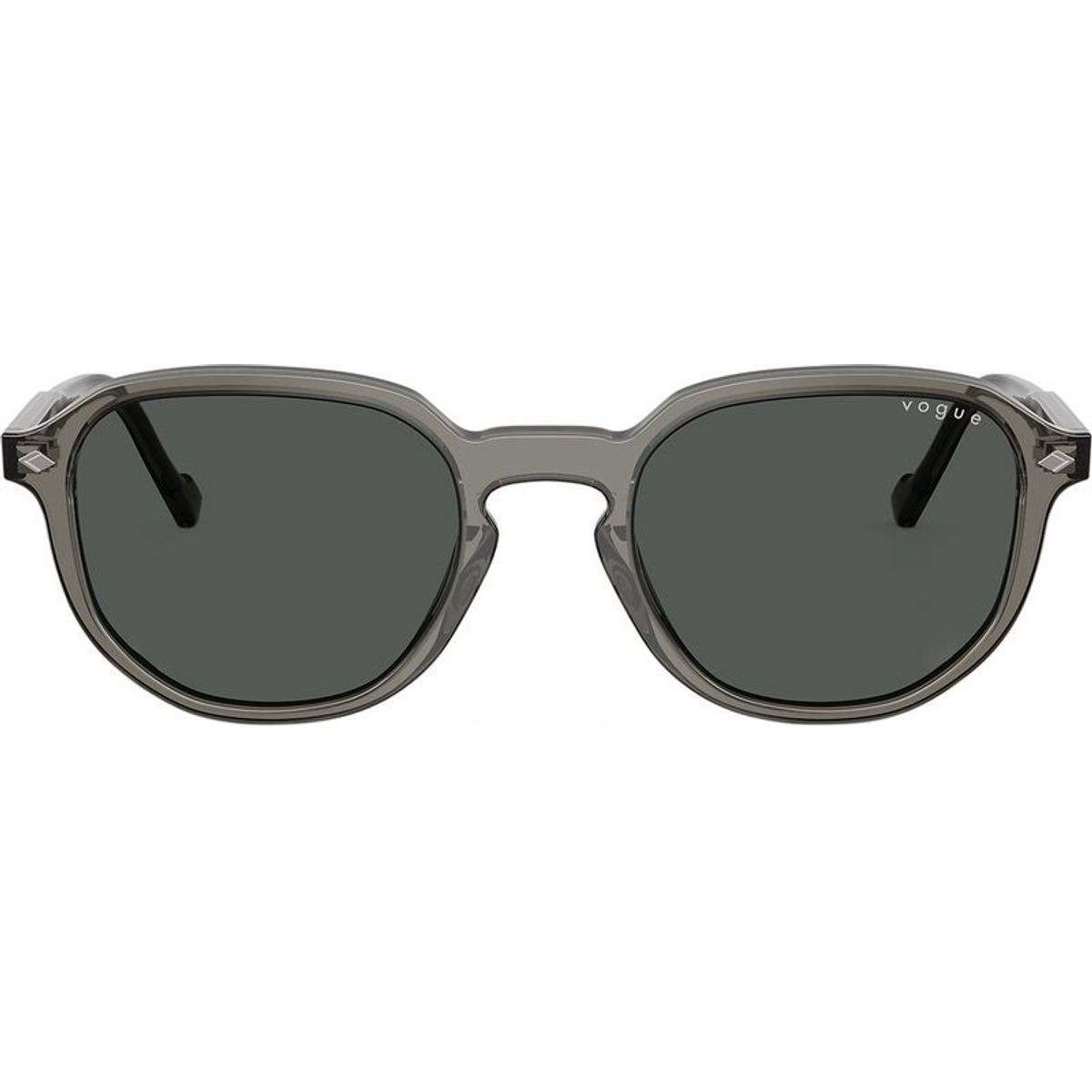 Introducing the men's VO5707S sunglasses by Vogue Eyewear as the ultimate fusion of retro charm and modern style. Boasting a square silhouette, this masculine style is defined by subtle geometric contours and a keyhole bridge that adds a nostalgic appeal to the contemporary style. The rich transparent grey acetate frame is adorned with subtle metal pins at the front for a clean, polished finish.